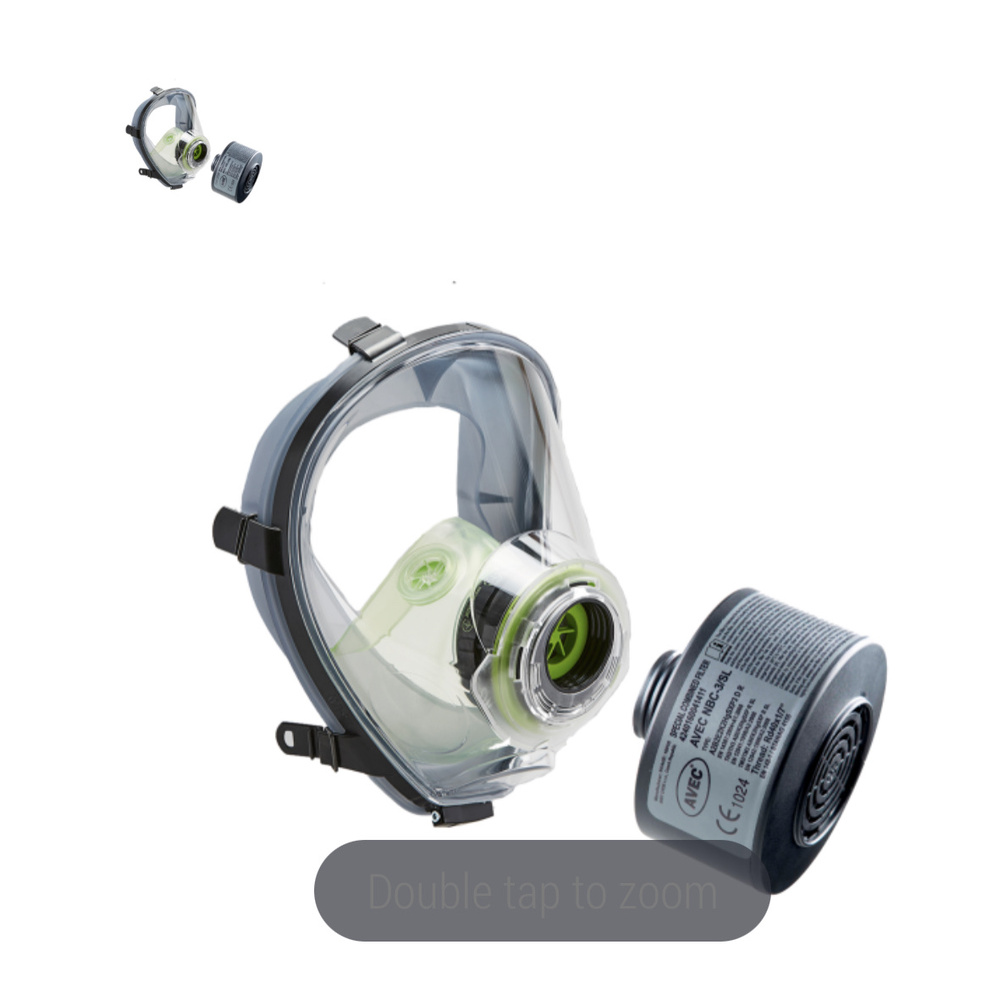 МАСКА використовується з фільтром (нарізеве з’єднання 40 мм). Маска складається з панорамної лінзи, прозорої внутрішньої маски з двома клапанами вдиху, 6-кінцевого гумового ременя головного гарнітуру з пластиковими пряжками.