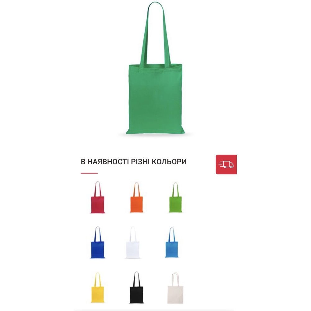 Міцна, зручна сумка з довгими ручками для носіння на плечі. Тканина сумки – щільна (140 г/м2).