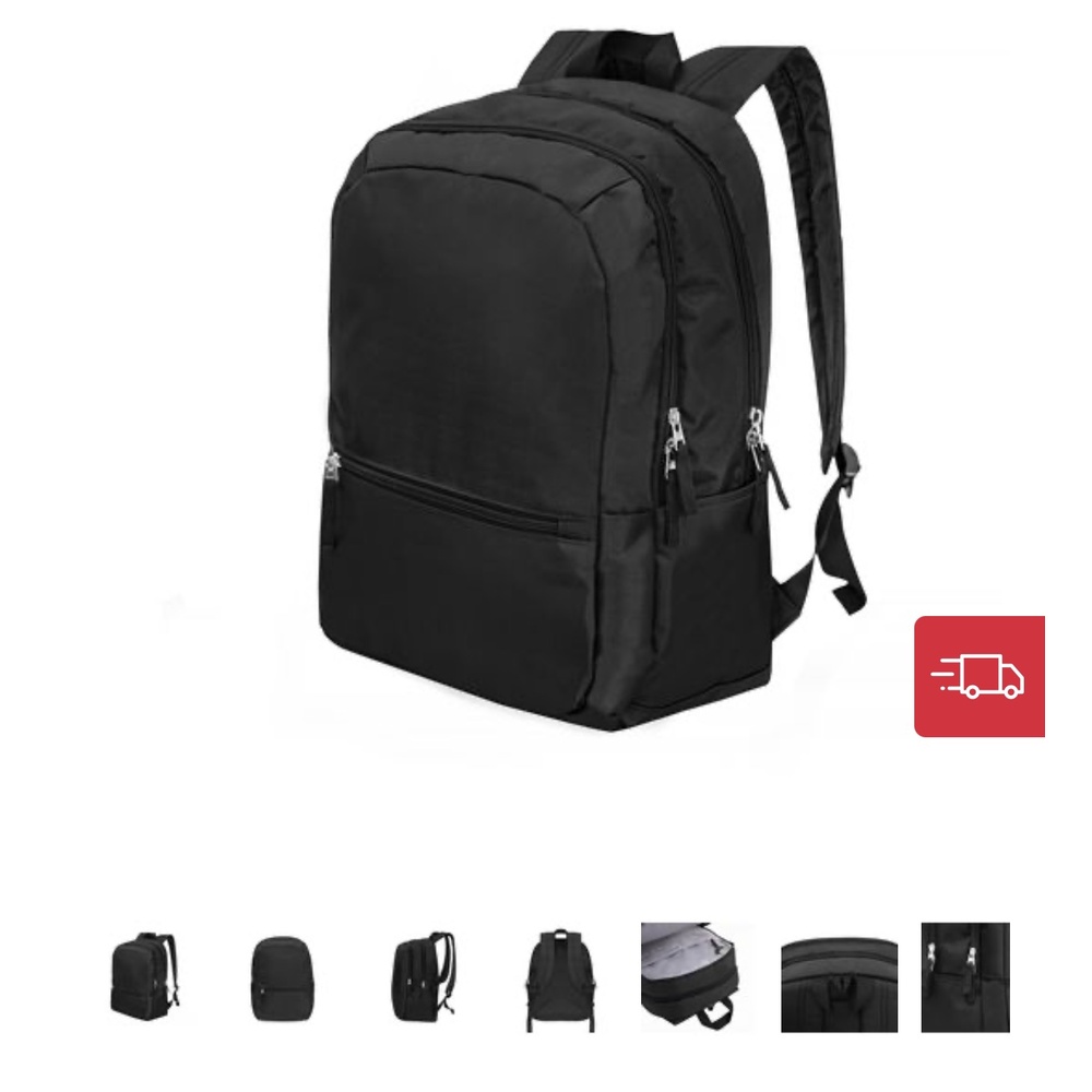 Рюкзак для ноутбука 15,6 дюймів. Одне велике відділення з органайзерами та карабіном для ключів, окреме відділення для ноутбука і окреме для документів, попереду 1 кишеня та 2 відкриті бокові кармани. Ущільнена м'яка підкладка. Поліестер 600D.