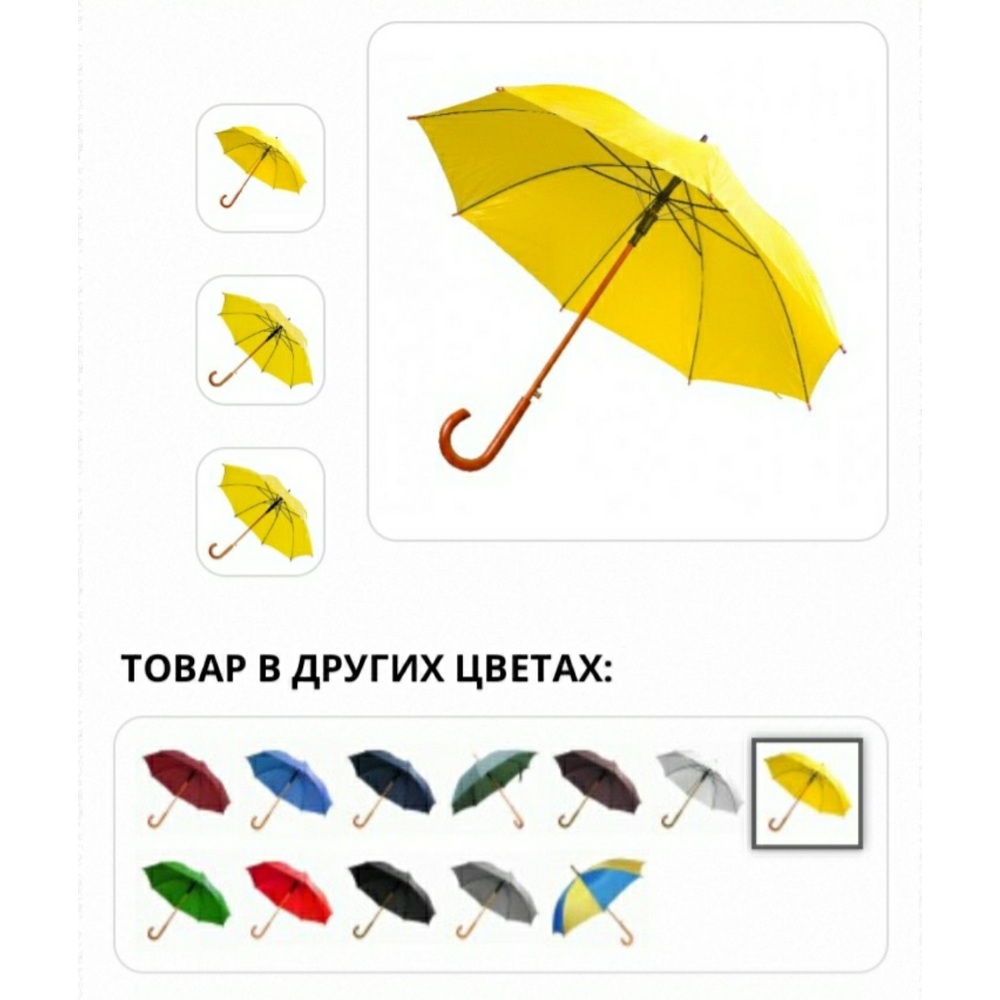 Парасолька є ідеальним рішенням для ваших промо компаній, адже логотип буде виграшно виглядатиме на цих яскравих і соковитих відтінках серії. Зручна форма парасольки, великий вибір кольорової палітри і ідеальне співвідношення ціни і якості тримають цю модель в топових позиціях. Такий подарунок завжди буде актуальним і не буде припадати пилом у кутку. парасолька-тростина напівавтомат, з дерев'яною вигнутою ручкою. Діаметр купола: 108 см
