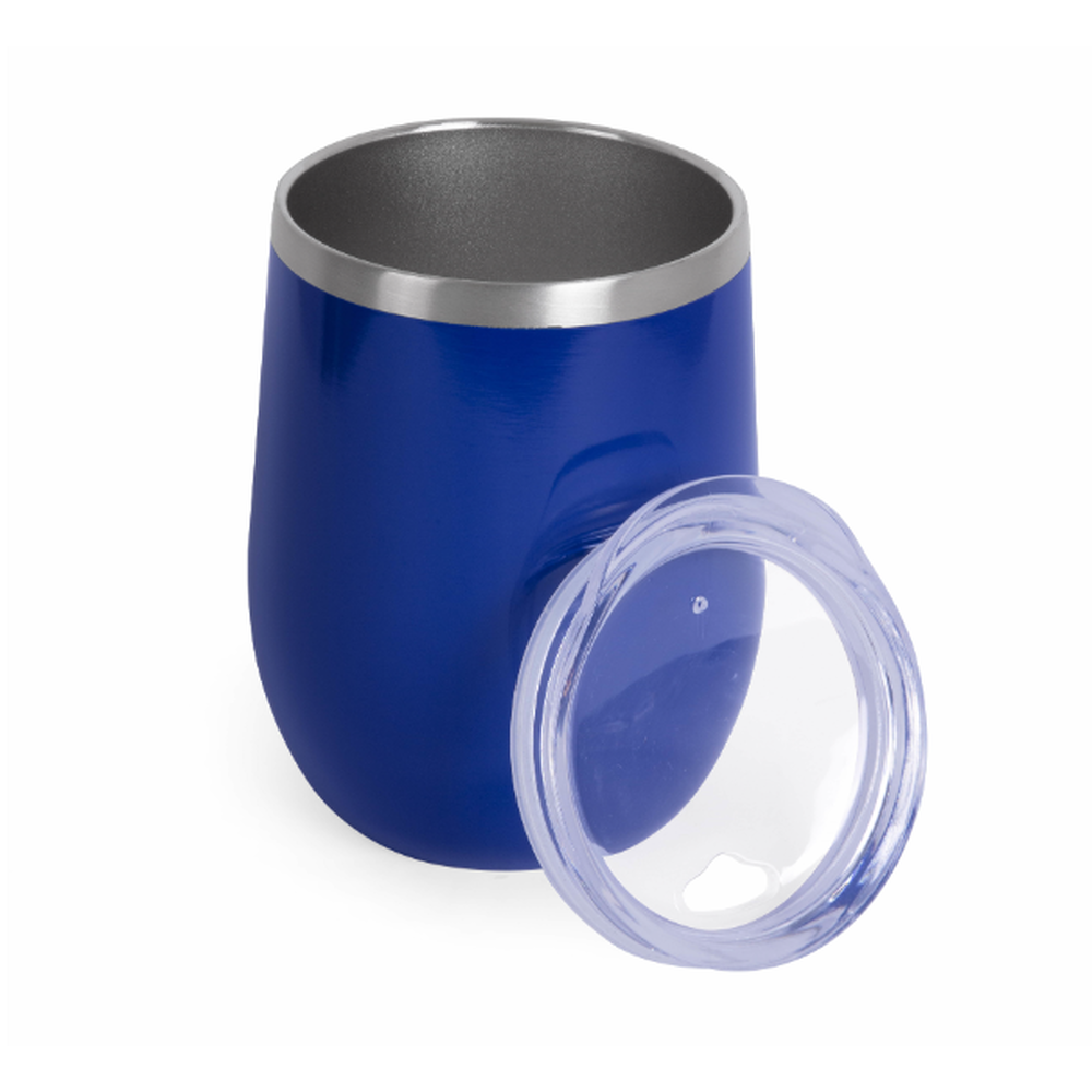 Металева термочашка з подвійними стійками з нержавіючої сталі ( глянцеве покриття емаль) і пластиковою прозорою кришкою з отвором. Кришку можна мити в посудомийній машині. Корпус мити тільки вручну, щоб не пошкодити кольорове покриття. Підтримує температуру протягом 6-ти годин