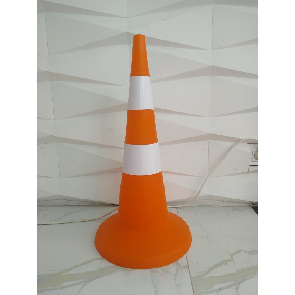 Конус сигнальний помаранчевий 60 см c 2 білими смугами, величезний, як стовп, висота 0,6 м, основа 0,44 м, товщина стін 0,4 см, розбити неможливо, прослужить довго, дуже стійкий. Рекомендується для робіт на трасі і парковках